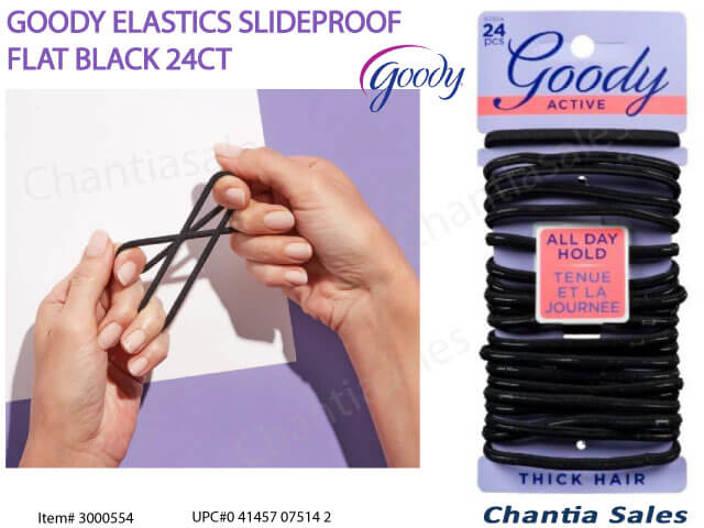 GOODY ELASTICS SLIDEPROOF FLAT BLACK 24CT #3000554