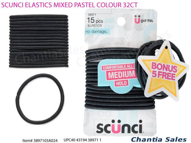 SCUNCI ELASTICS BLACK 15PK/W BONUS 5 TIES #3897103A024