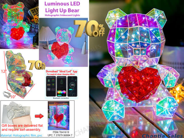 LUMINOUS TEDDY BEAR W/HEART LIGHT UP WITH GIFT BOX #T641619