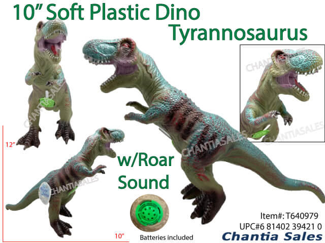 SS24-SOFT PLASTIC DINO - 10" T-REX W/ROAR GREEN T640979