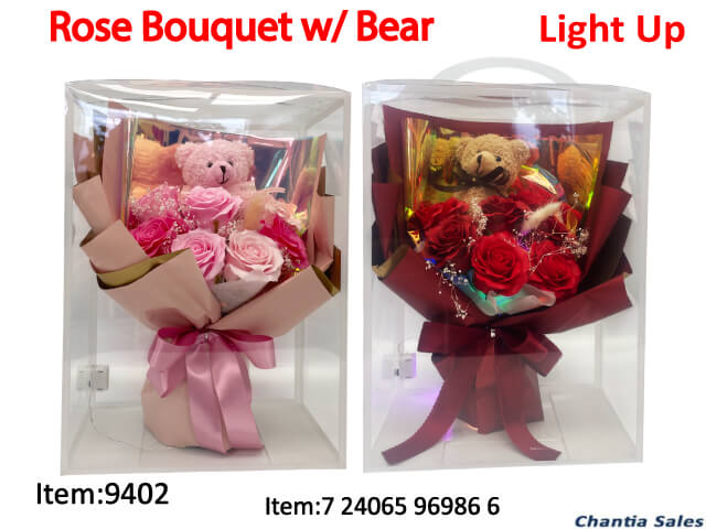 ROSE BOUQUET W/BEAR (2 COLORS) #9402
