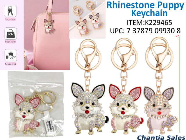 PUPPY DOG BLING KEYCHAINS (12PCS/PK) #K229465