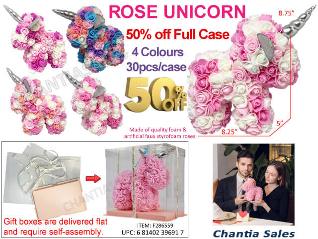 V26 - ROSE UNICORN W/GIFT BOX - 10/case #F286559 (10PCS DISCOUNT)