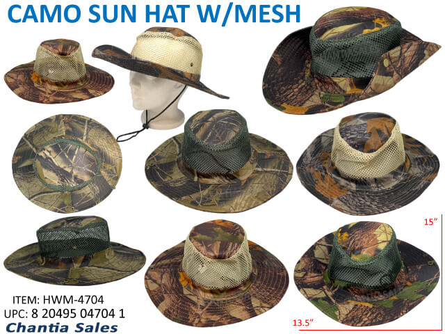 SUN HAT W/MESH CAMO (24/DISPLAY, 72/CASE) #49-4704
