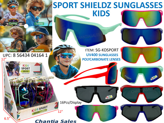 SUNGLASSES - KIDS SPORT SHIELDZ (16/DISPLAY, 96/C) #SG-KDSPORT