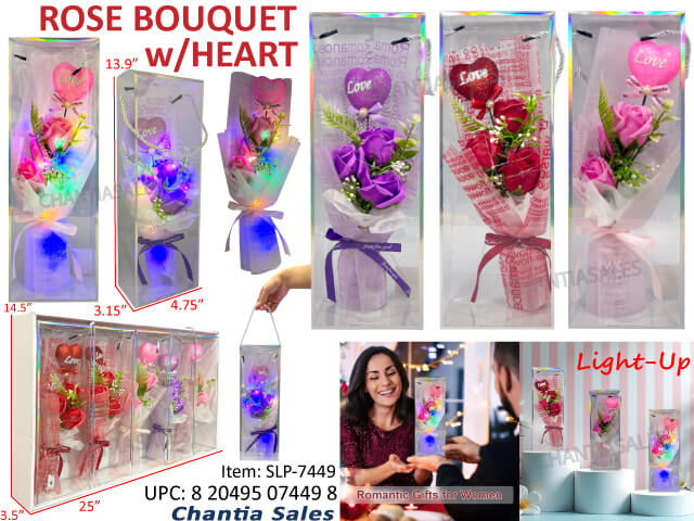 V26 - HEART & ROSE BOUQUET W/LIGHT (5/DISPLAY) #SLP-7449