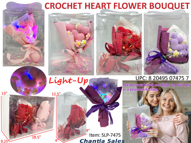 V26 - CROCHET HEART & FLOWER BOUQUET W/LIGHT (4/DISPLAY) #SLP-7475