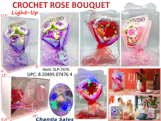 V26 - CROCHET ROSE & FLOWER BOUQUET W/LIGHT (4/DISPLAY) #SLP-7476