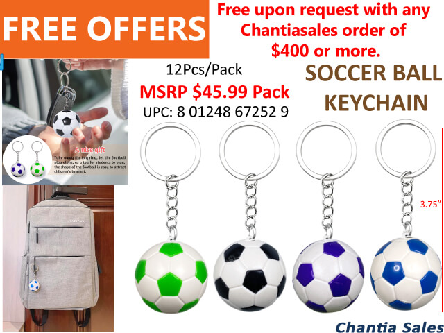 SOCCER BALL KEYCHAIN (12Pcs/Pack )(Free upon request with any order of $400 or more. Limit One Free Offer per order.)