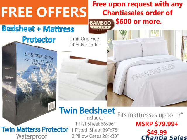 Twin Size Bedsheet + Mattress Protector (Free upon request with any order of $600 or more. Limit One Free Offer per order. Limited Time Offer)