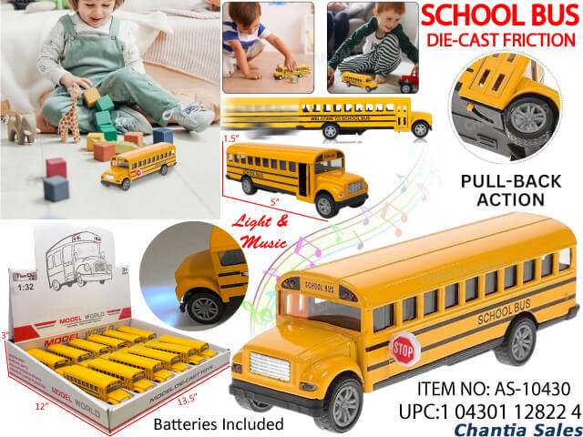 ALLOY DIE CAST SCHOOL BUS WITH LIGHT&MUSIC (12/DISPLAY) #AS-10430