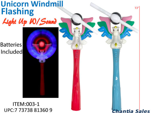 UNICORN WINDMILL FLASHING WAND ((12/PK) #004-6M