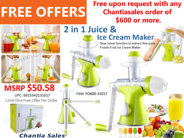 2in1 JUICE & ICE CREAM MAKER (Free upon request with any order of $600or more. Limit One Free Offer per order. Limited Time Offer)