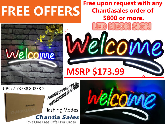 NEON LED - WELCOME SIGN (Free upon request with any order of $800 or more. Limit One Free Offer per order.)