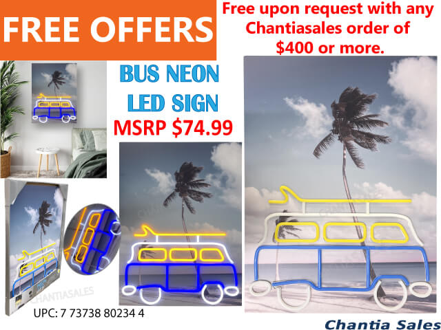 NEON LED WALL ART - VAN WITH SURFBOARD (Free upon request with any order of $400 or more. Limit One Free Offer per order. Limited Time Offer)