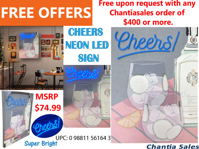 NEON LED WALL ART - CHEERS BLUE COLOUR LARGE (Free upon request with any order of $400 or more. Limit One Free Offer per order. Limited Time Offer)