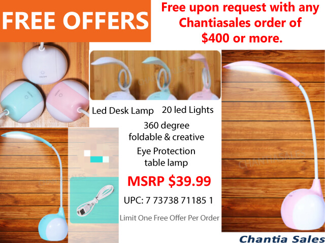 LED DESK LAMP 1PC- Free upon request with any order of $400 or more. Limit One Free Offer per order.