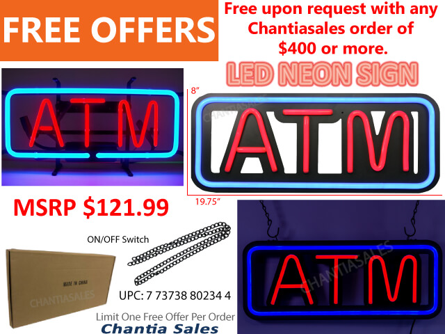 NEON LED - ATM SIGN (RED/BLUE) - Free upon request with any order of $400 or more. Limit One Free Offer per order.
