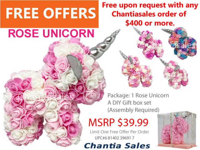 ROSE UNICORN WITH GIFT BOX - Free upon request with any order of $400 or more. Limit One Free Offer per order. Limited Time Offer