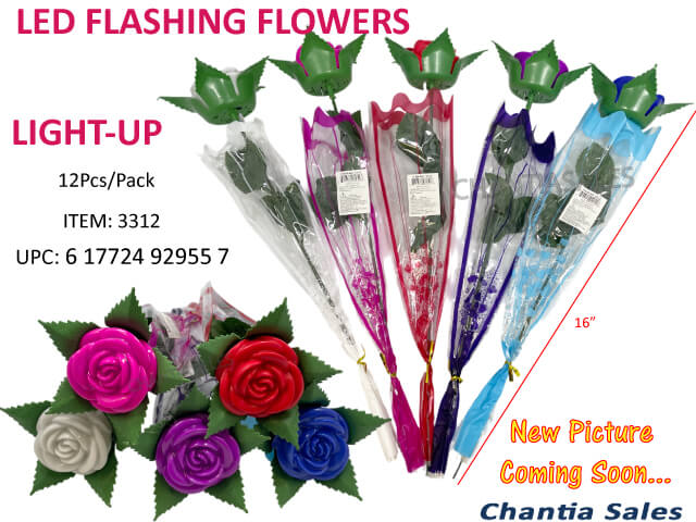 BF25 - ROSE LED FLASHING ASS'D COLOUR (12/PK) #3312