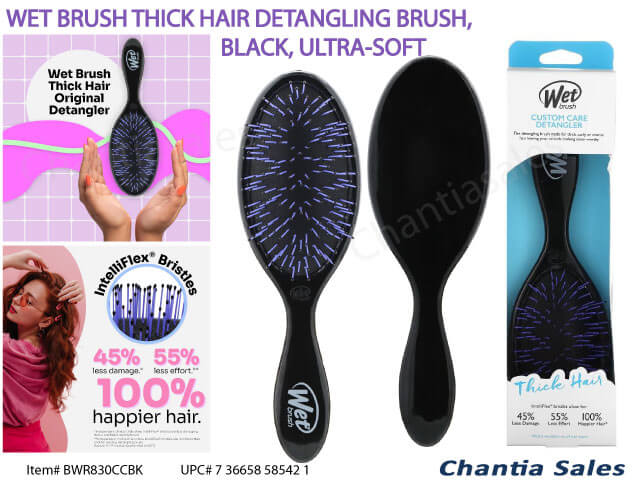 WET BRUSH THICK HAIR DETANGLING BRUSH, BLACK, ULTRA-SOFT #BWR830CCBK