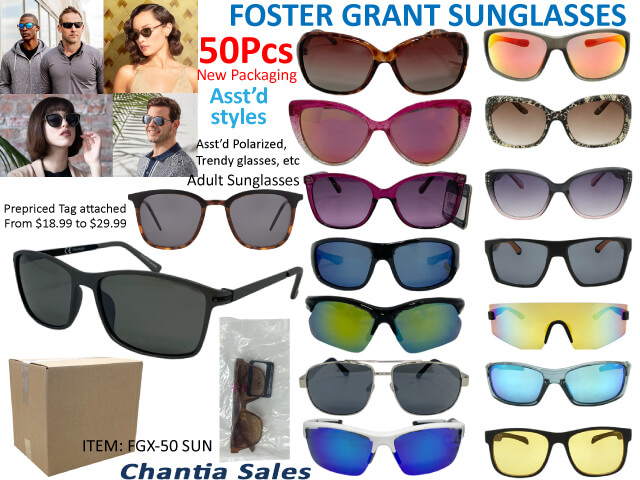 FOSTER GRANT SUNGLASSES PREPRICED $18.99-29.99EA (50PCS/BOX) #FGX-50SUN