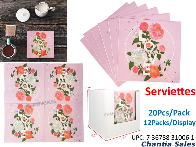 SERVIETTES - FLOWERS W/LEAFY BACKGROUND