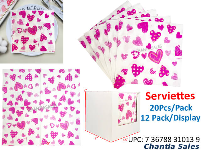 SERVIETTES - 3 HEARTS W/RED BACKGROUND #31007