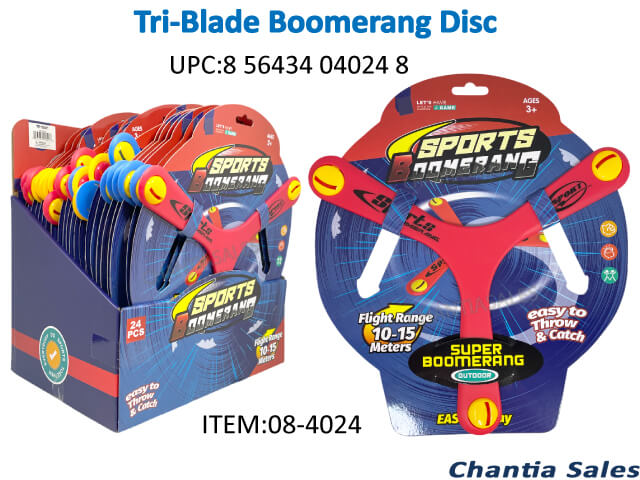 TRI-BLADE BOOMERANG DISC WITH WHISTLES (24/pk) #TM-4024
