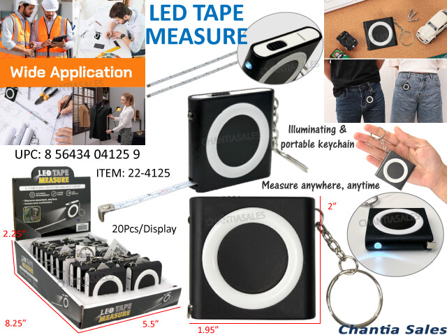 TAPE MEASURE KEYCHAIN WITH LED LIGHT (20/DISPLAY) #22-4125