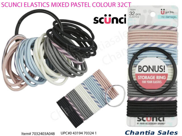 SCUNCI ELASTICS MIXED PASTEL COLOUR 32CT #7032403A048