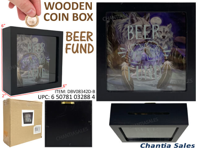 WOODEN COIN BOX - BEER FUND WOLF #DBV0151-B