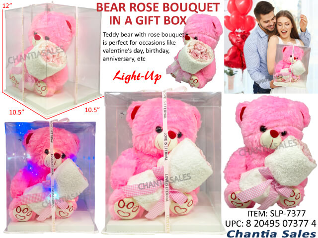 PLUSH BEAR & ROSE BOUQUET W/ LIGHT (5/DISPLAY) #SLP-7442