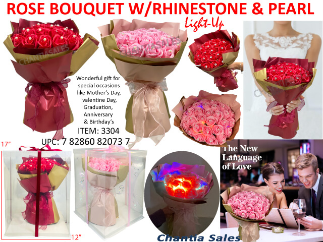 ROSE BOUQUET - RHINESTONE AND PEARL W/LIGHT #3304