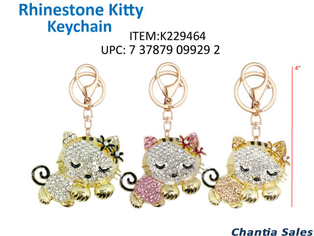 KITTY CAT BLING KEYCHAINS (12PCS/PK) #K229464