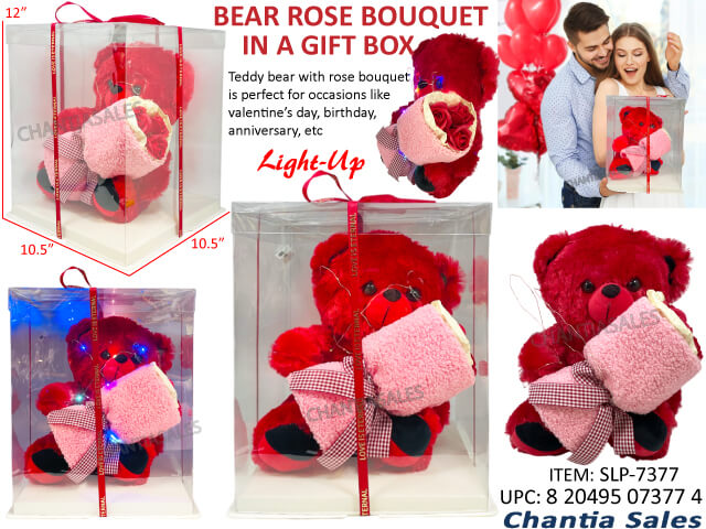 LARGE TEDDY BEAR &/ROSE BOUQUET W/ LIGHT - RED COLOUR #SLP-7377