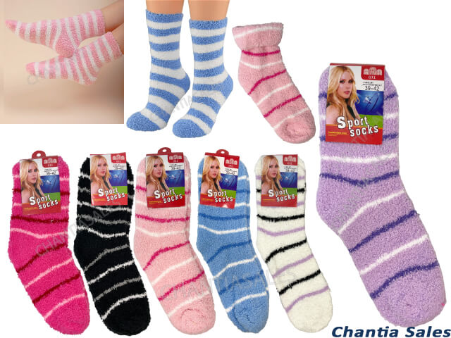 WINTER FLUFFY SOCKS - STRIPES ASST'D COLOUR #17245