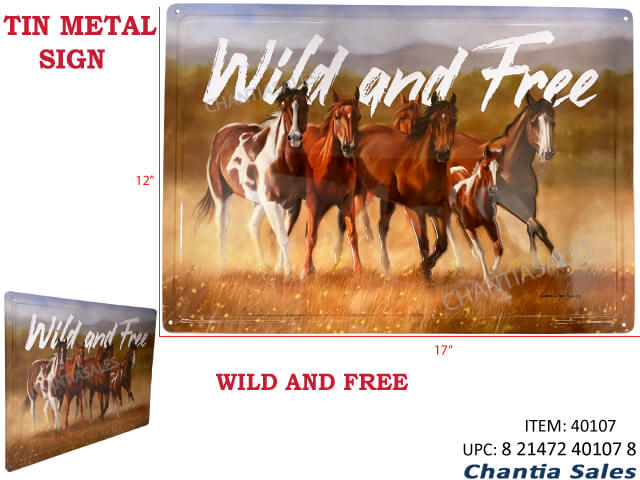 METAL SIGN - HOSRSES WILD & FREE #40107