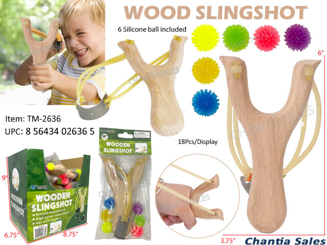 WOODEN SLINGSHOT WITH SILICONE BALLS (18/DISPLAY) #TM-2636