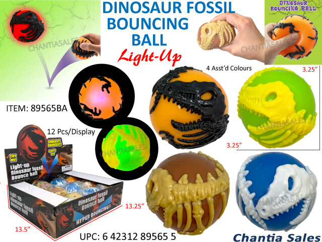 BOUNCING BALL - DINOSAUR FOSSIL SKELETON W/LIGHT UP (12/DIS) #89565