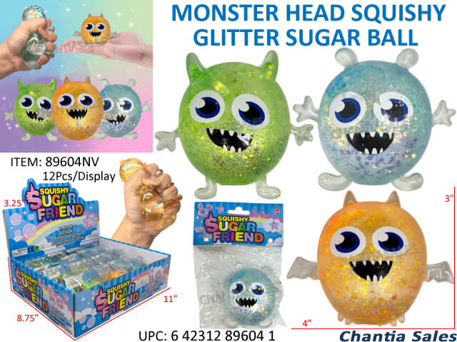 GLITTER SQUEEZE SUGAR MONSTER HEAD (12/DISPLAY) #89604