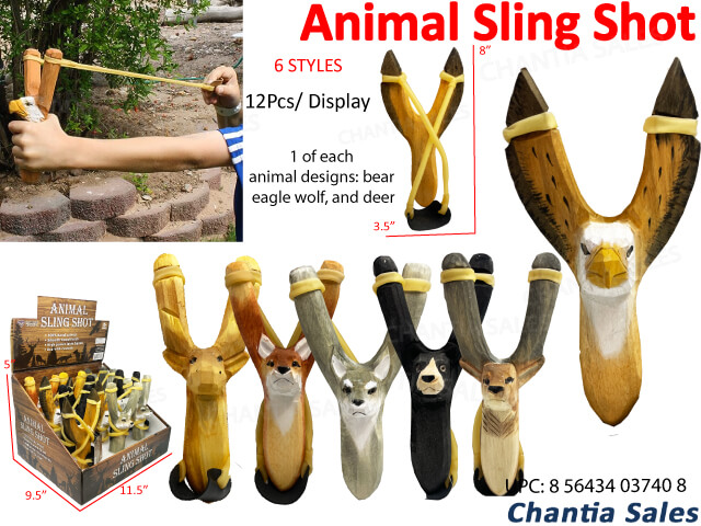 HAND-CRAVED WOOD WILDLIFE SLING SHOT (12/Display) #TM-3740