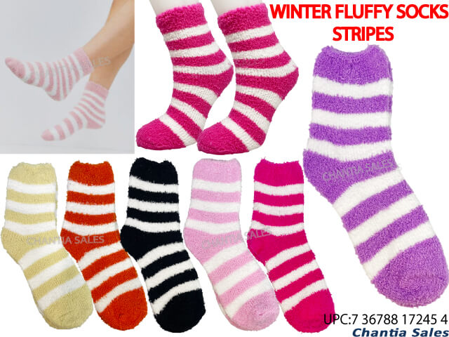 WINTER FLUFFY SOCKS - STRIPES ASST'D COLOUR #17245
