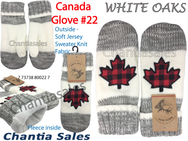 WINTER MITTEN - CANADA CHECKER LEAF GRAY COLOUR (12PK) #30616