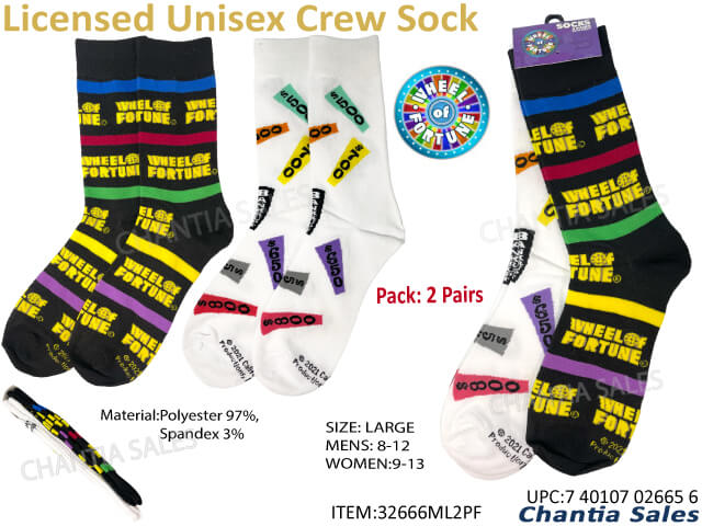 LICENSED 2PK SOCKS - WHEEL OF FORTUNE (LARGE) #32666ML2PF