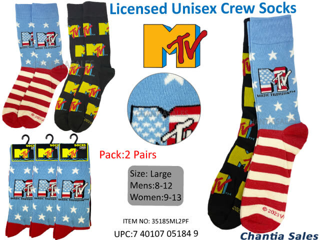 LICENSED 2PK SOCKS - MTV (LARGE) #35185ML2PF