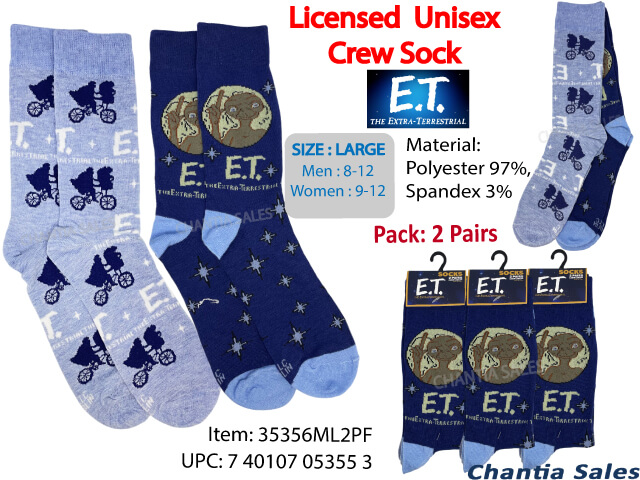 LICENSED 2PK SOCKS - E.T. #35356ML2PF