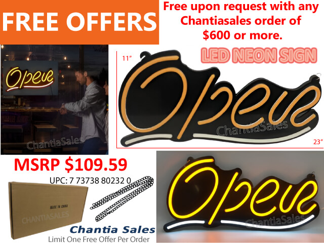 NEON LED - OPEN SIGN (ORANGE/WHITE) Free upon request with any order of $600 or more. Limit One Free Offer per order.