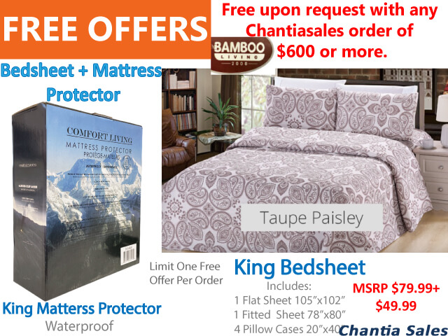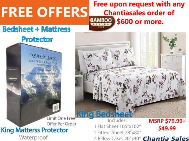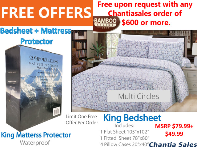 King Size Bedsheet + Mattress Protector (Free upon request with any order of $600 or more. Limit One Free Offer per order. Limited Time Offer)
