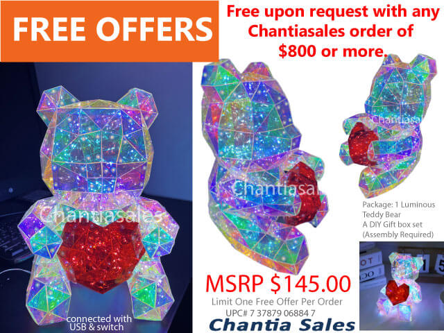 LUMINOUS LED TEDDY BEAR WITH APP CONNECT - Free upon request with any order of $800 or more. Limit One Free Offer per order. Limited Time Offer